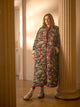 The versatile housecoat with an A line silhouette is quilted with three layers of natural materials. This Limited Edition coat has 100% fine wool satin (woven by one of the finest Scottish mills) as the outer fabric with contrasting lining encasing a natural British wool filing, helping to keep the wearer warm without overheating.