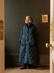 The versatile housecoat with an A line silhouette is quilted with three layers of natural materials. A printed cotton on the top with contrasting lining encasing our special fibre of cashmere guard hair and wool, helping to keep the wearer warm without overheating.